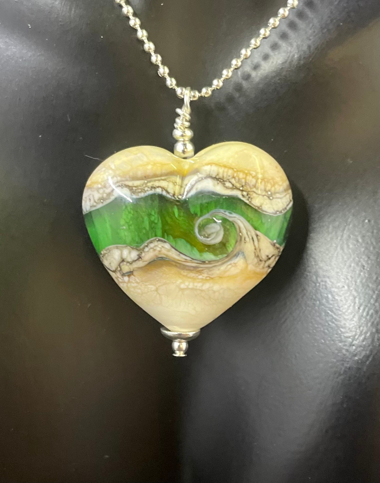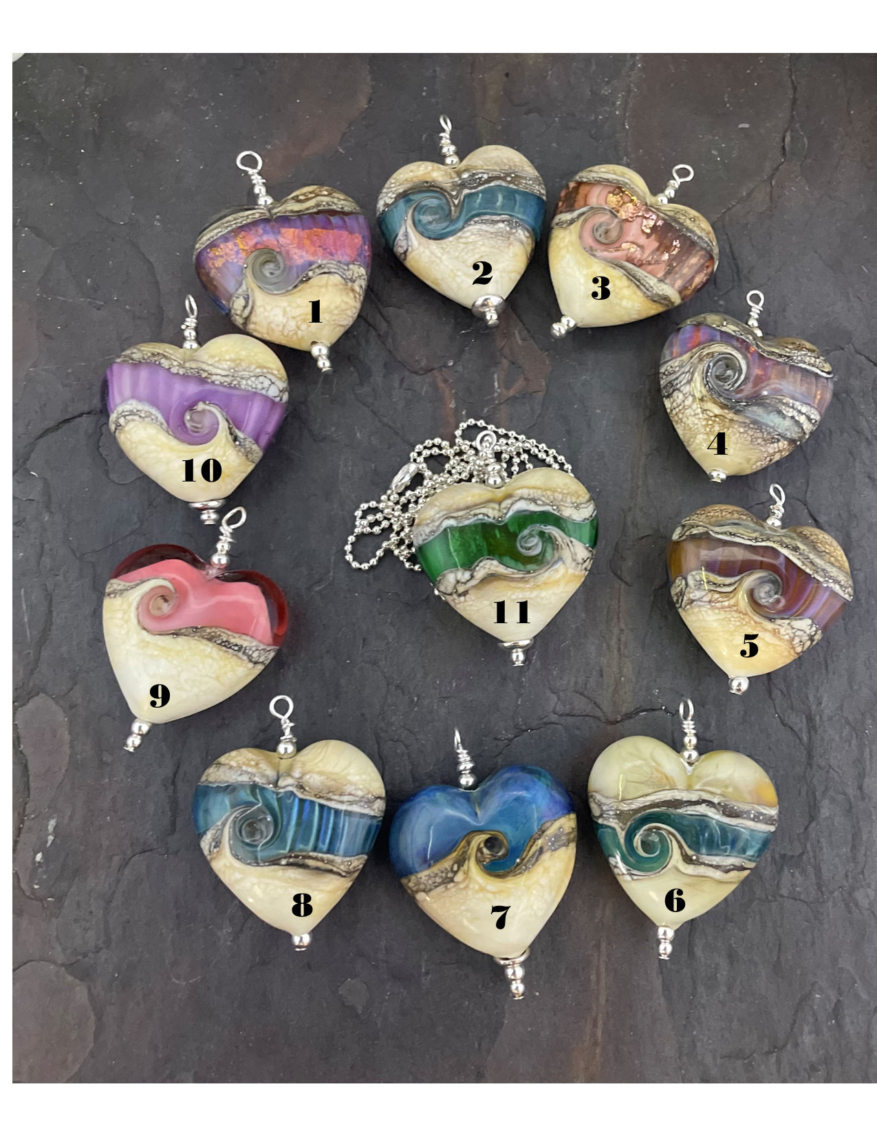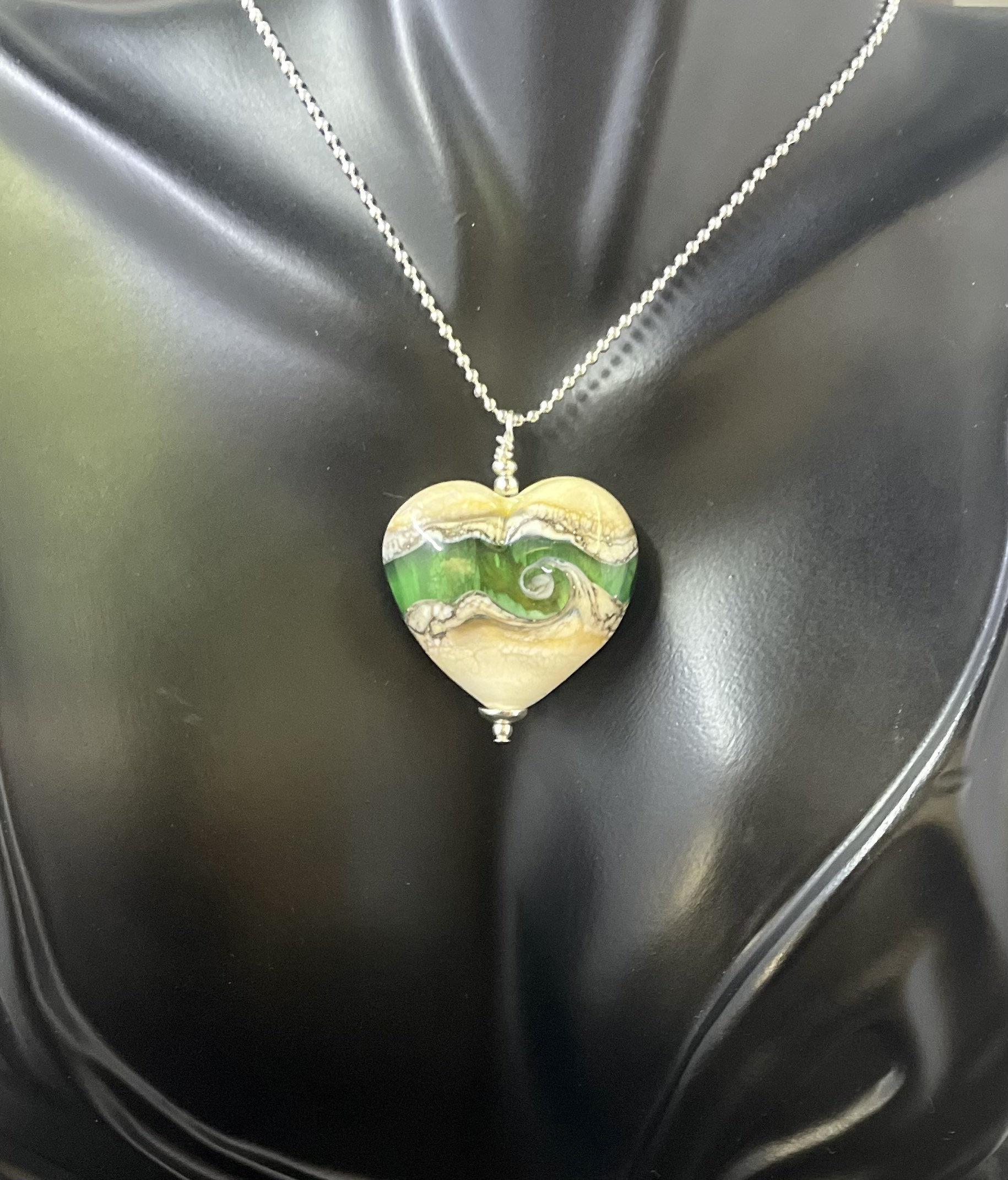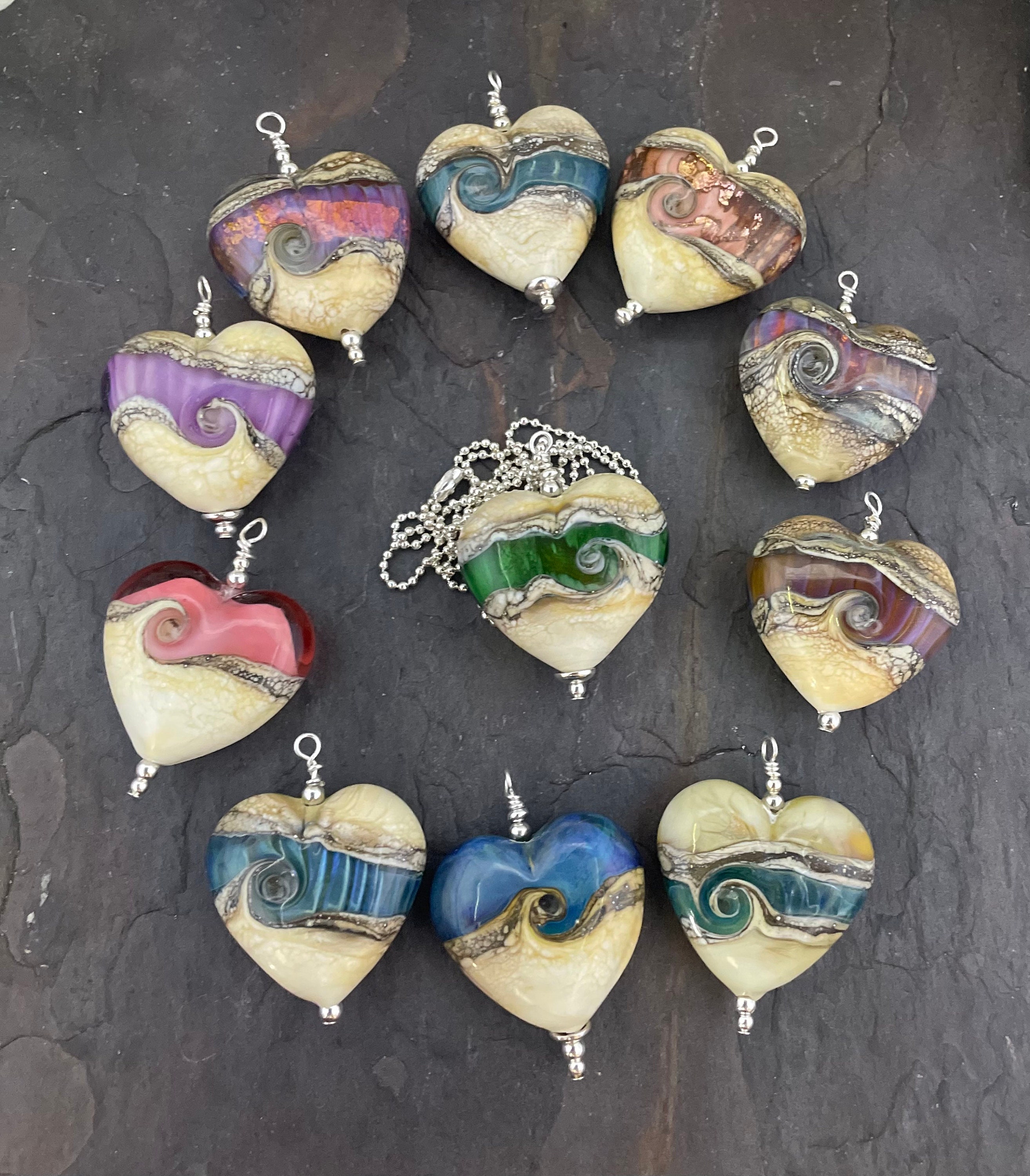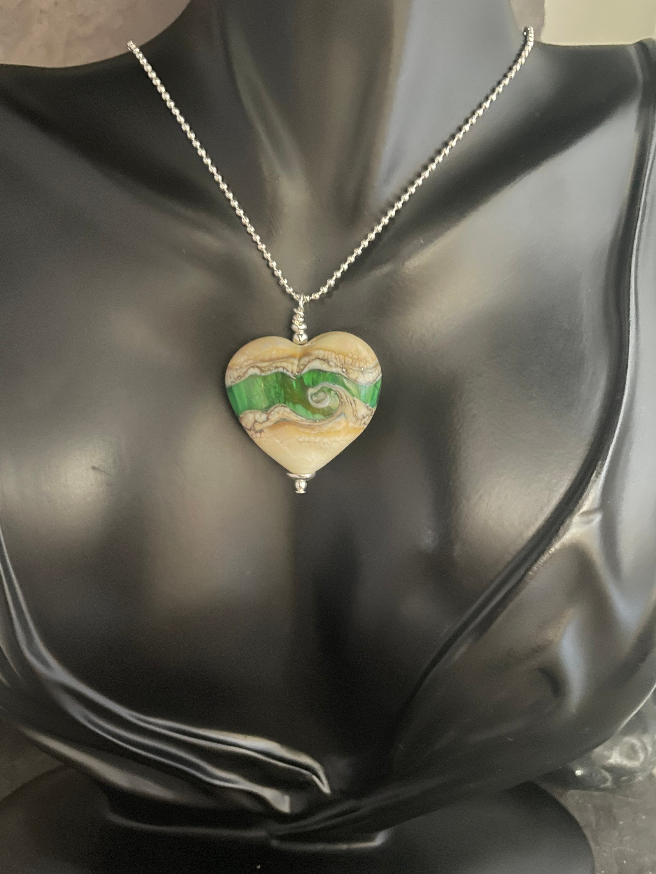 Here is a whole handful of beautiful Ivory and Silver Glass Hearts for you to choose from. The each come attached to an 18" silver filled mini ball chain in a fun windowed tin box for shipping safely. each heart is 1" from top to bottom, 1.25" including the silver filled fittings.