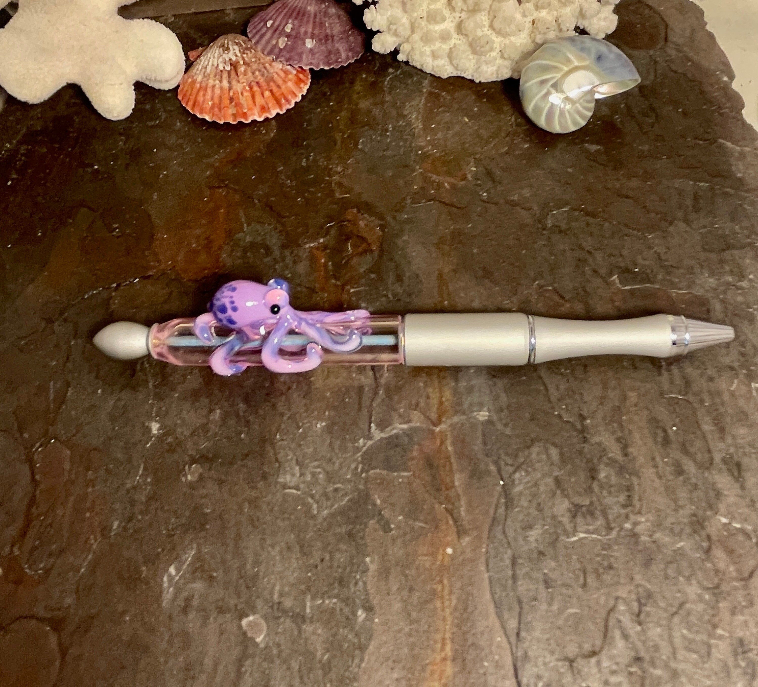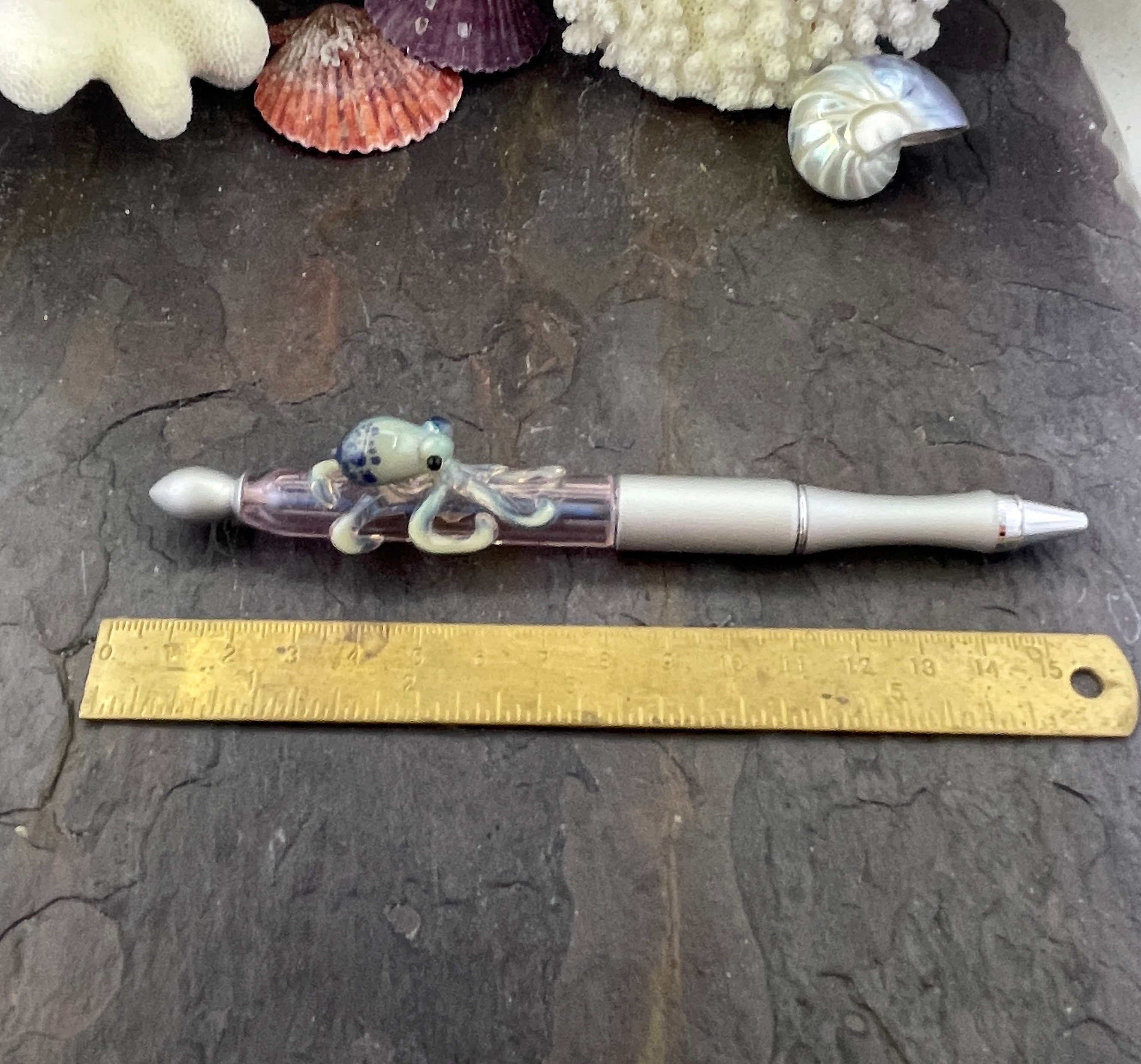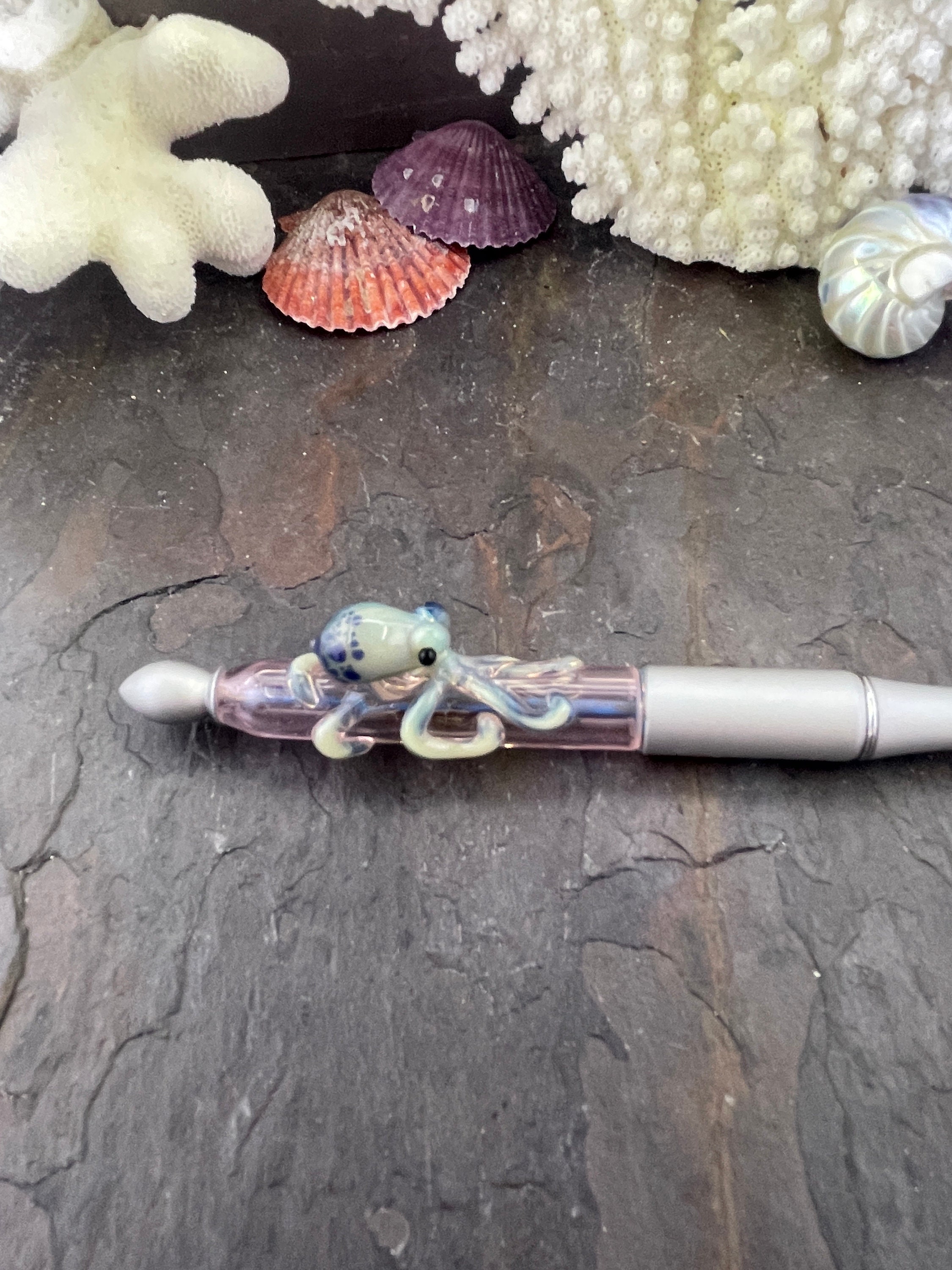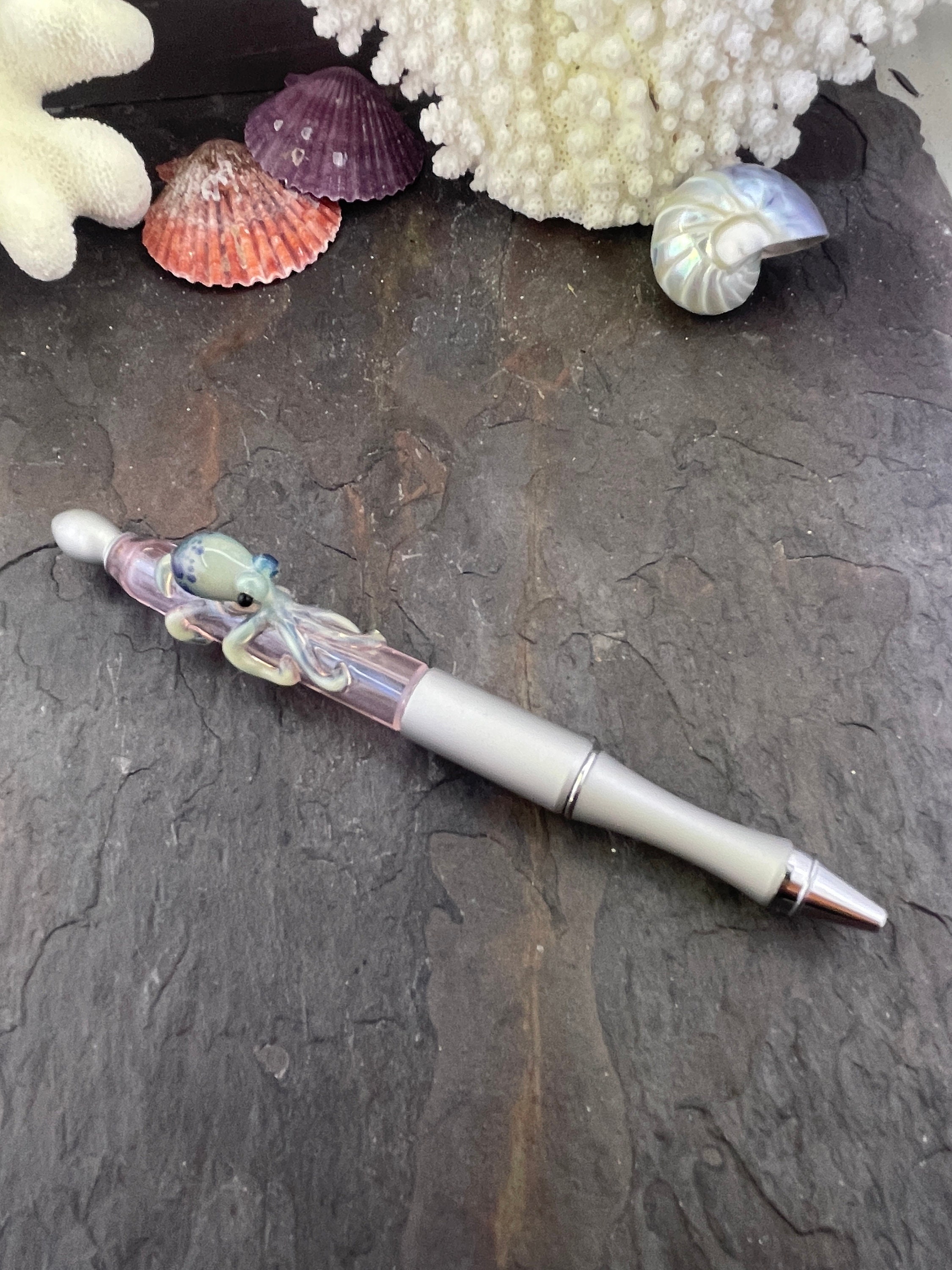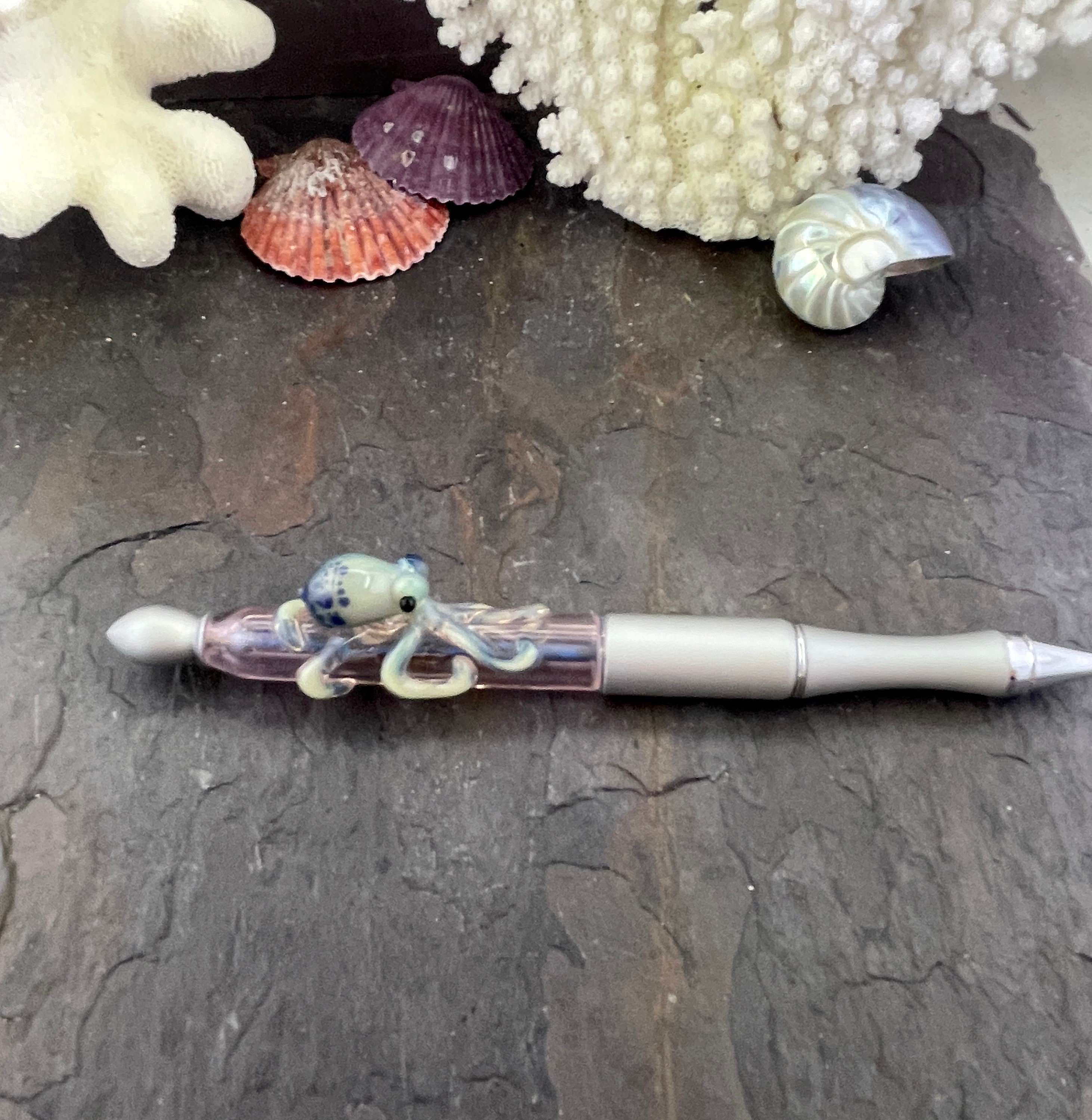 Another fun Boro Pen - made with tough Pyrex glass with a happy little octo to keep you company... comes with a free refil! This is a fun color changing CFL glass… green in LED lighting and a beautiful pink under compact fluorescent light or CFL