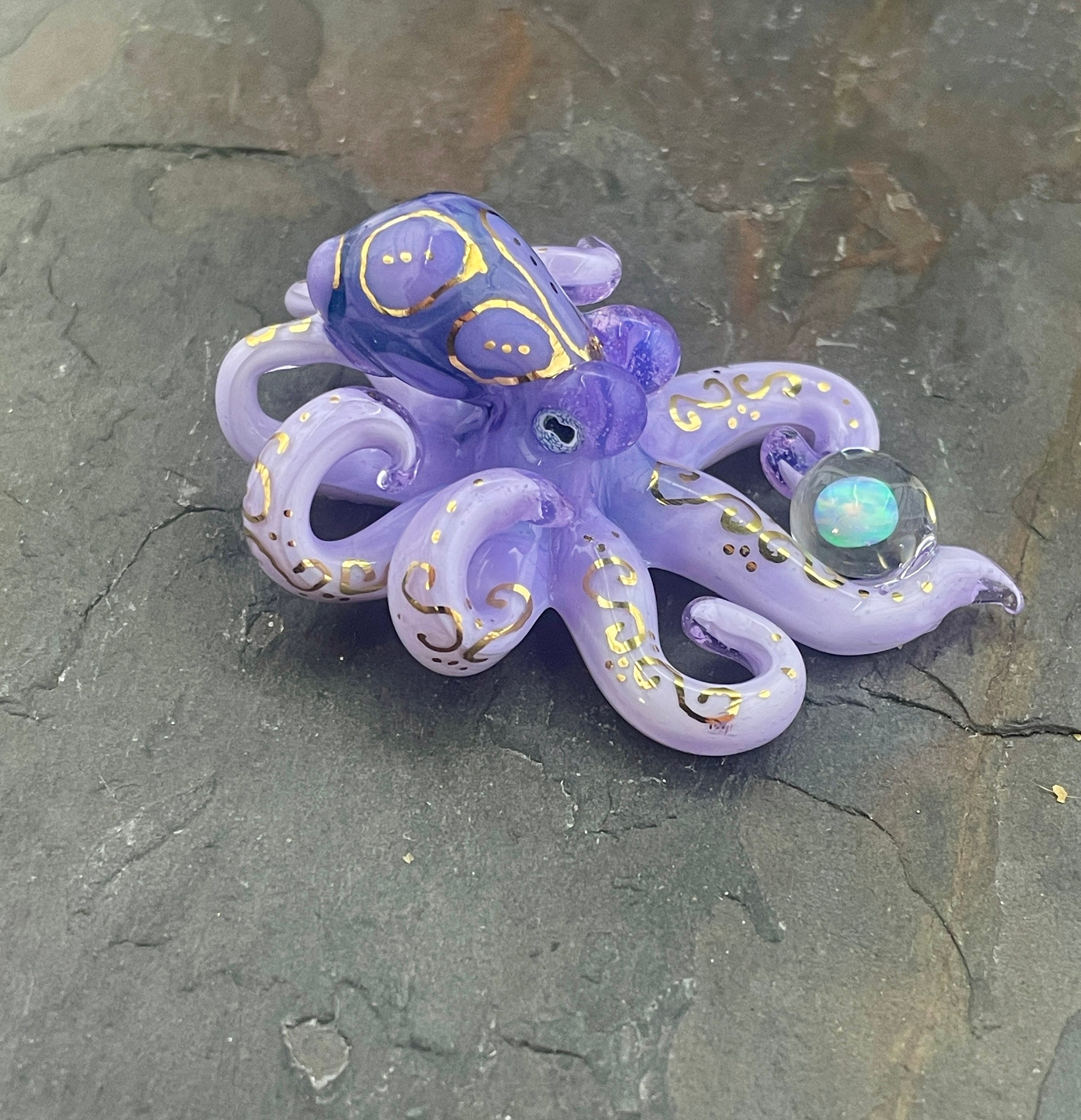 Stamped on the bottom with the Maker's Mark "M" while still molten. Each of these Octos are Made to Order using only the best quality Boro glass, which means it is made when you order it. So expect small differences as with any original art piece.