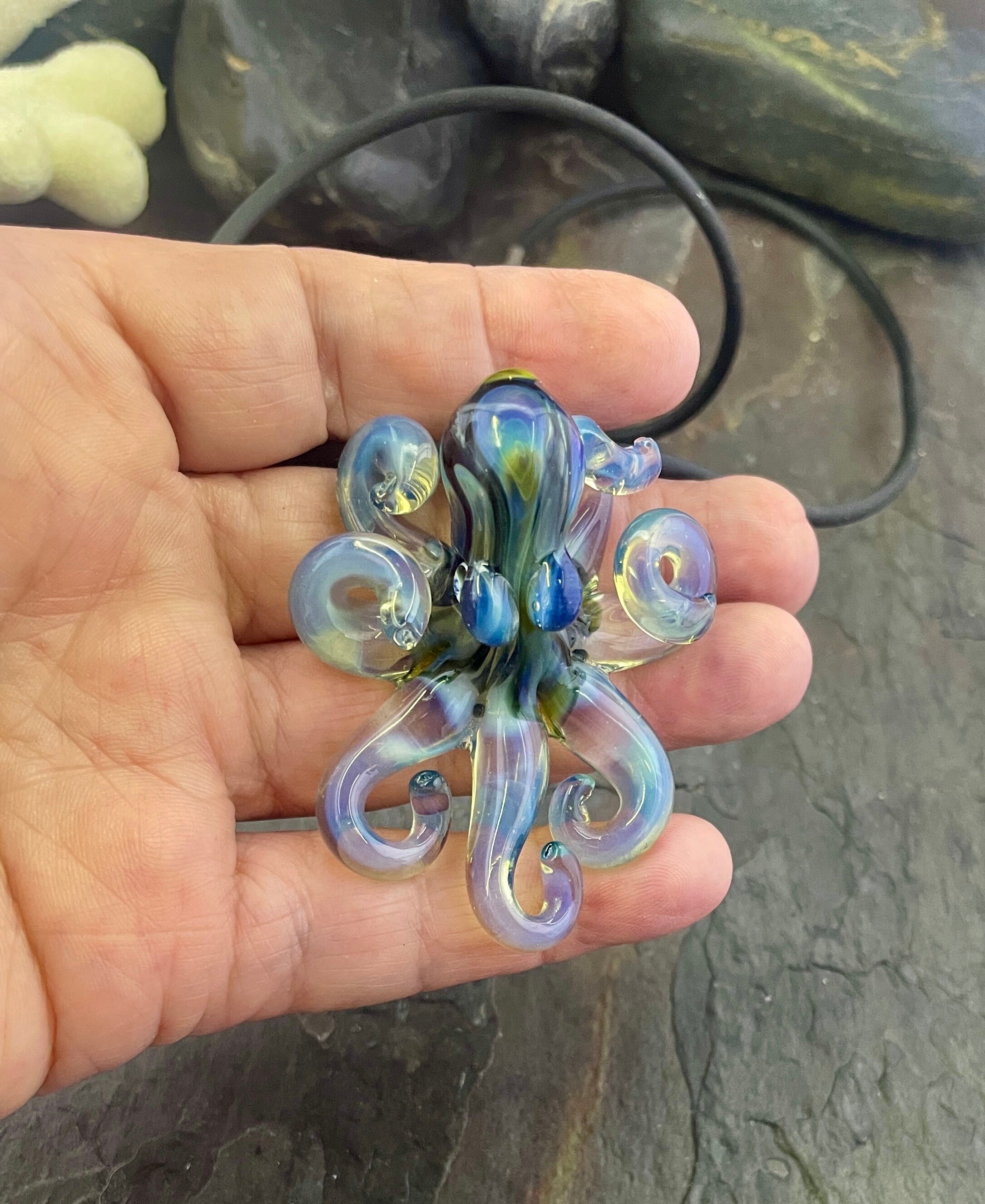 Stamped on the bottom with the Maker's Mark "M" while still molten. Each of these Octos are Made to Order using only the best quality Boro glass, which means it is made when you order it. So expect small differences as with any original art piece.