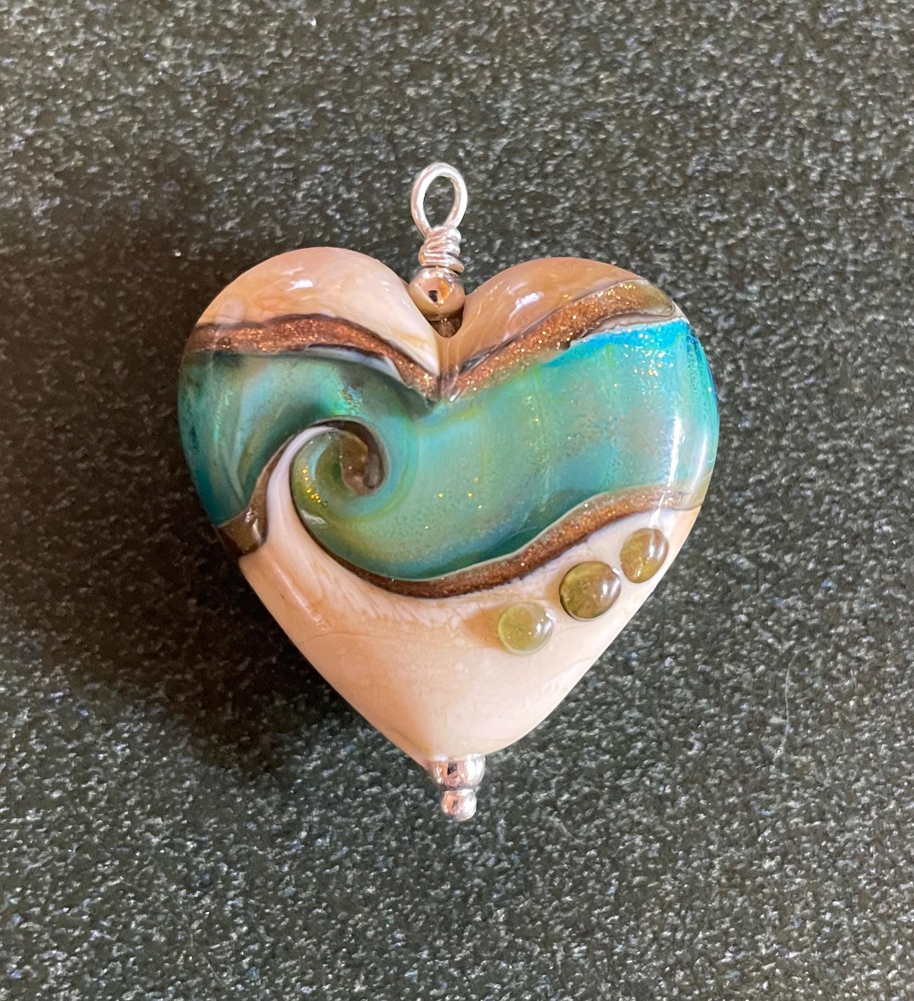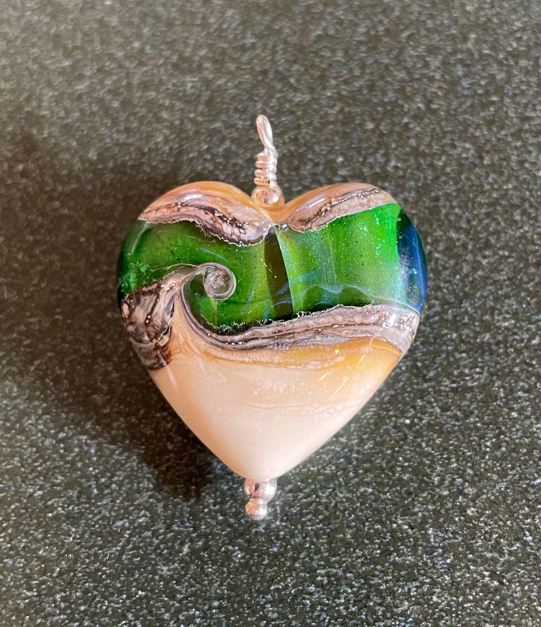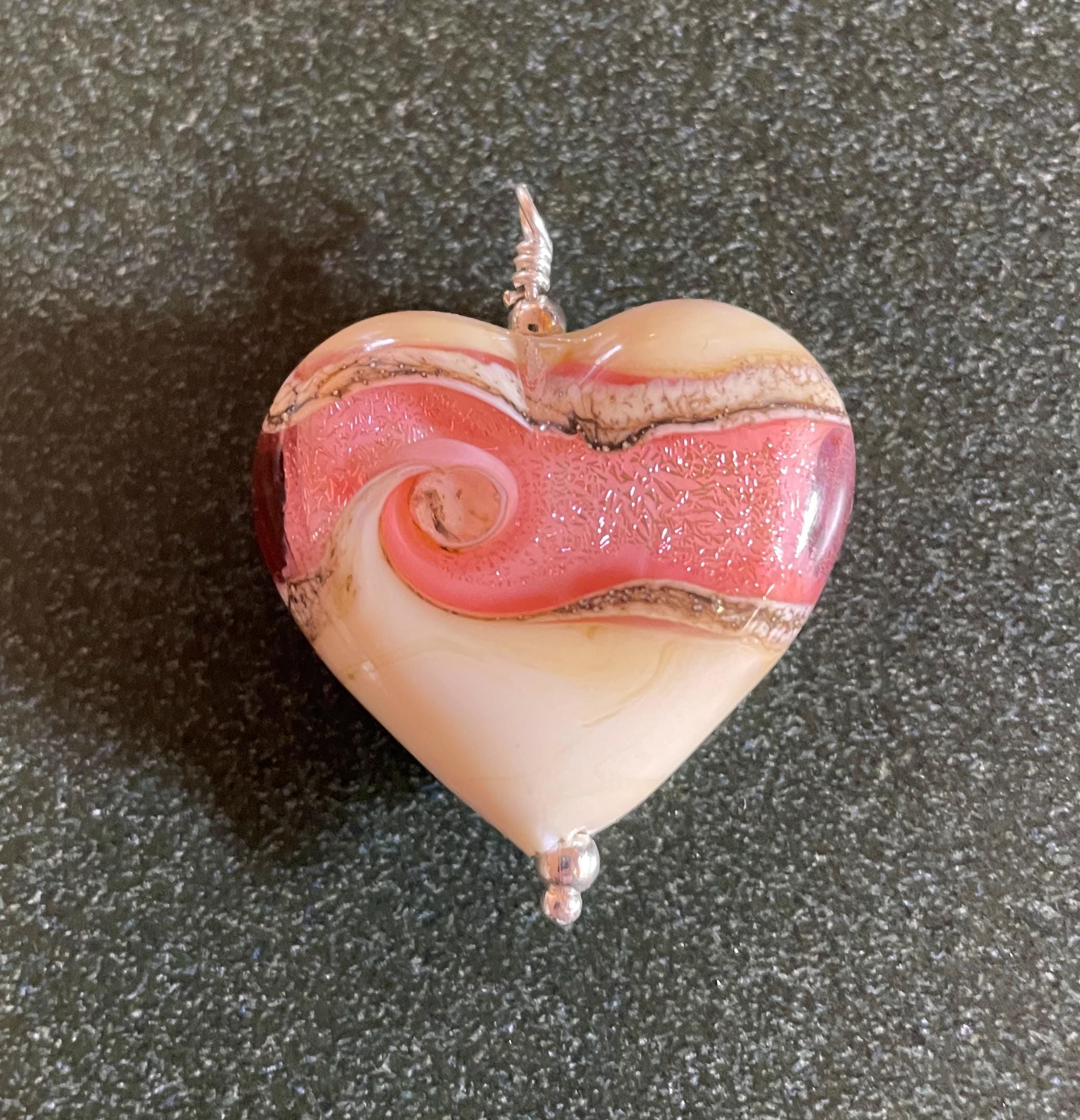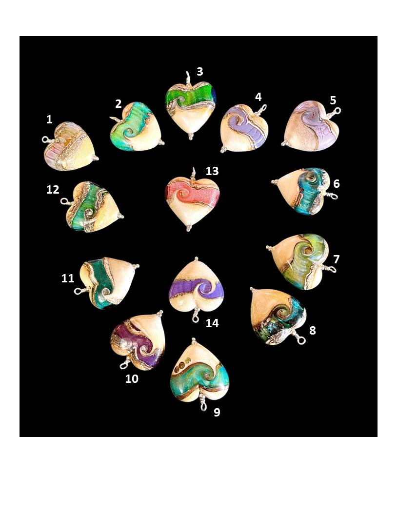 Here is a whole handful of beautiful Ivory and Silver Glass Hearts for you to choose from. The each come attached to an 18" silver filled mini ball chain in a fun windowed tin box for shipping safely. each heart is 1" from top to bottom, 1.25" including the silver filled fittings. Choose your heart number from the drop down list.